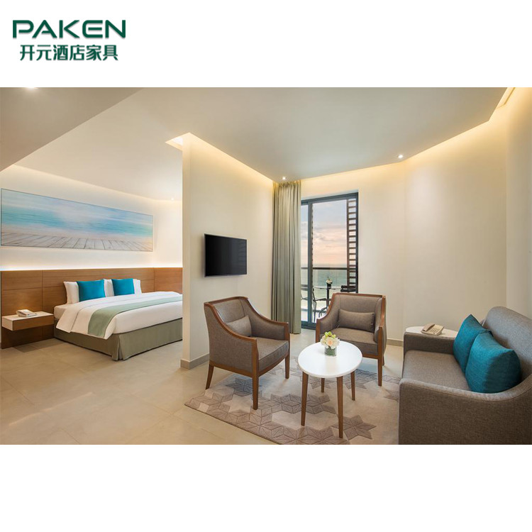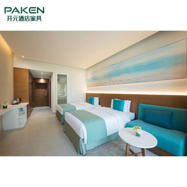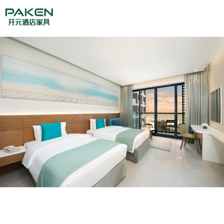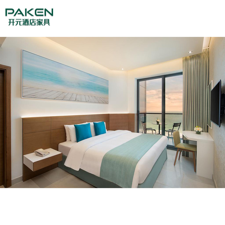 হেডবোর্ড ক্ল্যাডিং সহ পাইকারি হালকা রঙের সিম্পল ডিজাইনের হোটেল বেডরুমের আসবাব