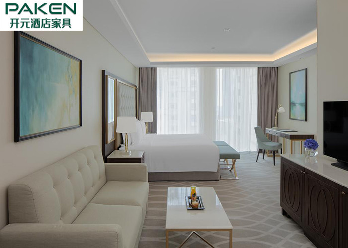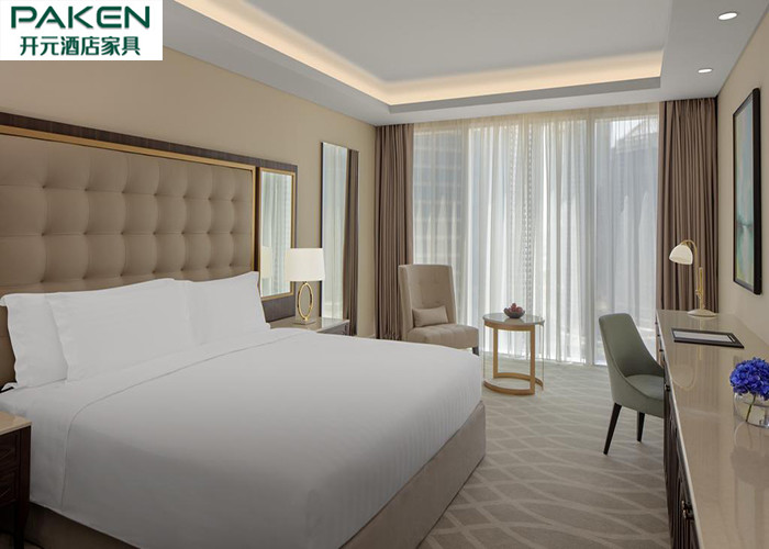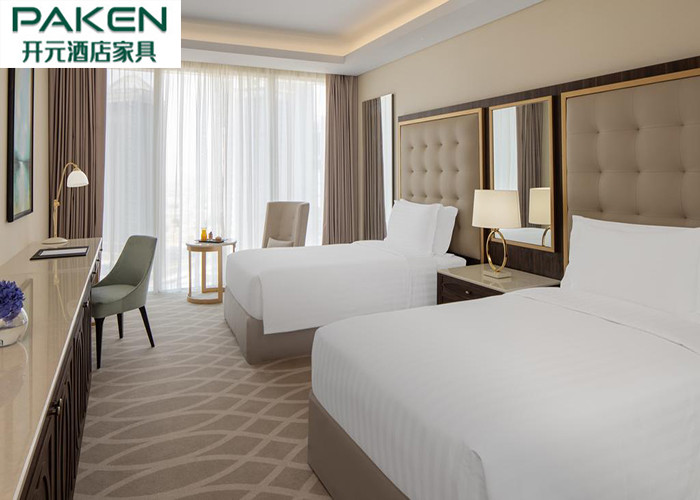 ইকোনমিক স্ট্যান্ডার্ড হোটেল ফার্নিচার বেডরুম কাতার/ আরবি হালকা বিলাসবহুল আসবাবপত্র আখরোট + গোল্ডেন এসএস সেট করে